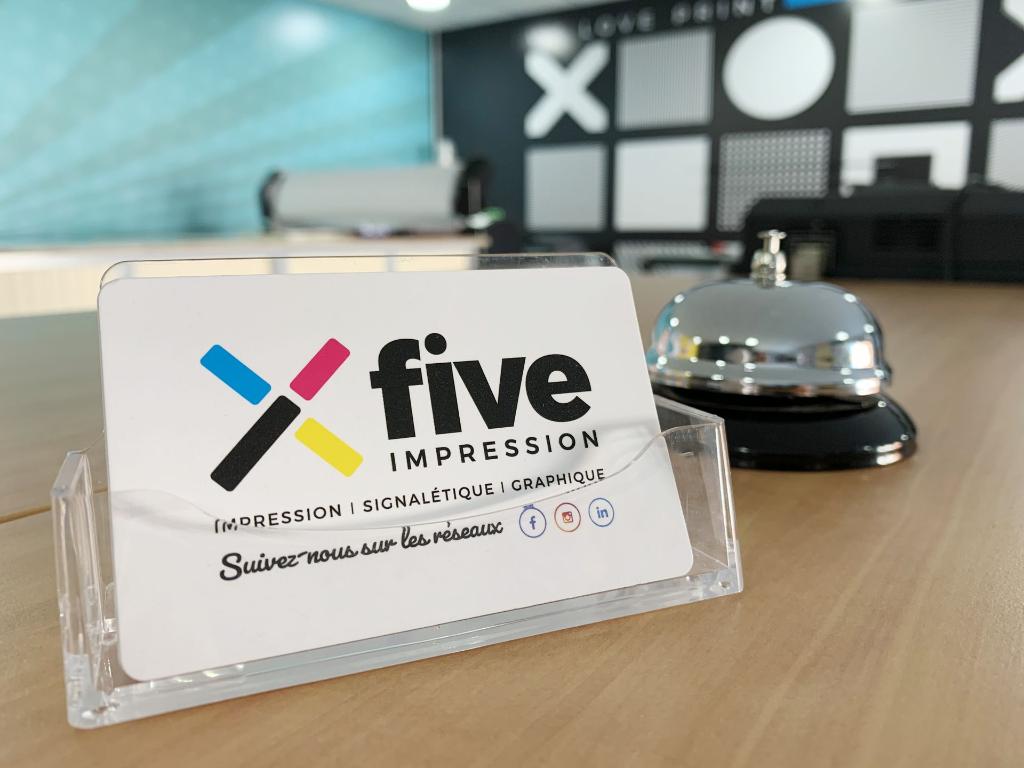 FIVE® est un imprimeur numérique de produits de communication et de signalétique personnalisables, situé à Bruay-la-Buissière dans les Hauts-de-France. Au service des professionnels, commerçants, industries et revendeurs, nous proposons une impression et une fabrication haut de gamme sur des milliers de combinaisons de produits, finitions et supports. Défenseur du Made in France et du développement durable, nous disposons d’un atelier de dernière génération certifié Imprim’vert®, une logistique optimisée, un service personnalisé pour une production réactive et qualitative.